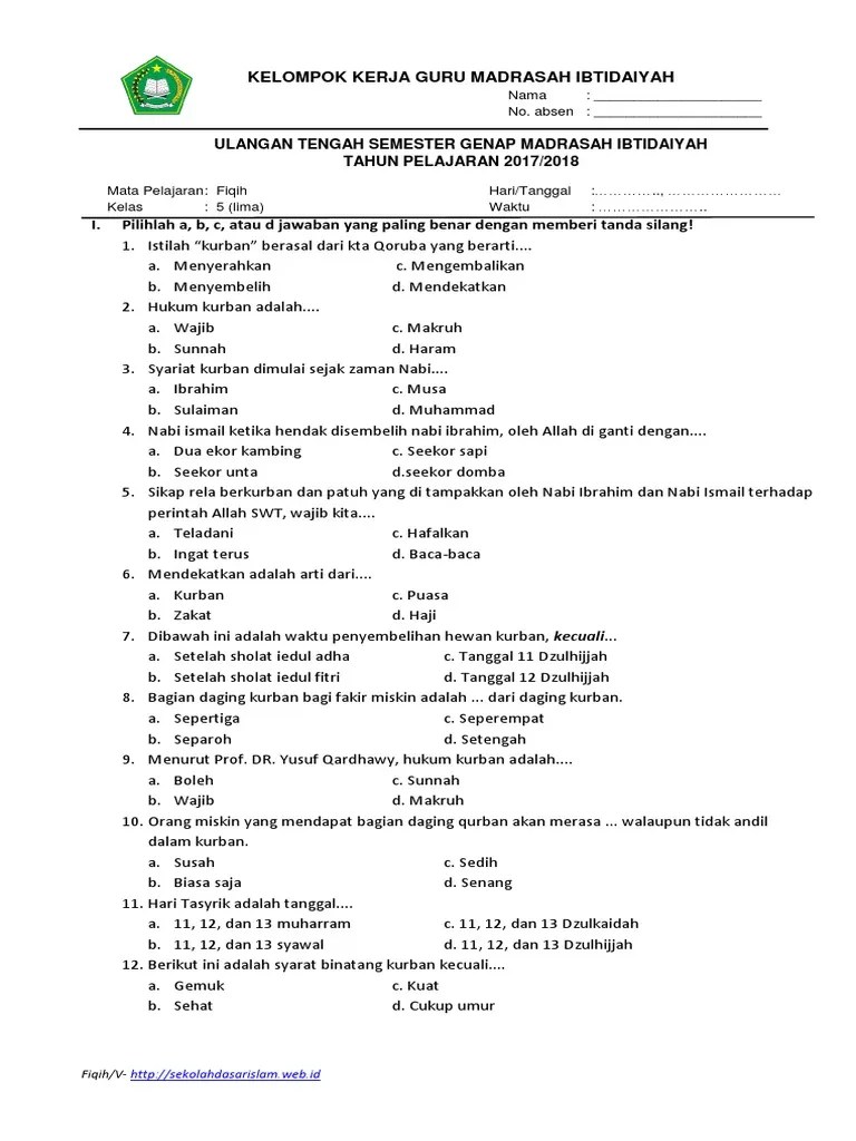 Soal Fikih Kelas 5 Semester 1 Pilihan Ganda : 20 Contoh Soal Pas Uas Fiqih Kelas 5 Sd Mi Semester 1 K13 Lengkap Pembahasan Dan Kisi Kisi Mantra Sukabumi / Seperti yang terdahulu, model latihan soal ini berjenis online …